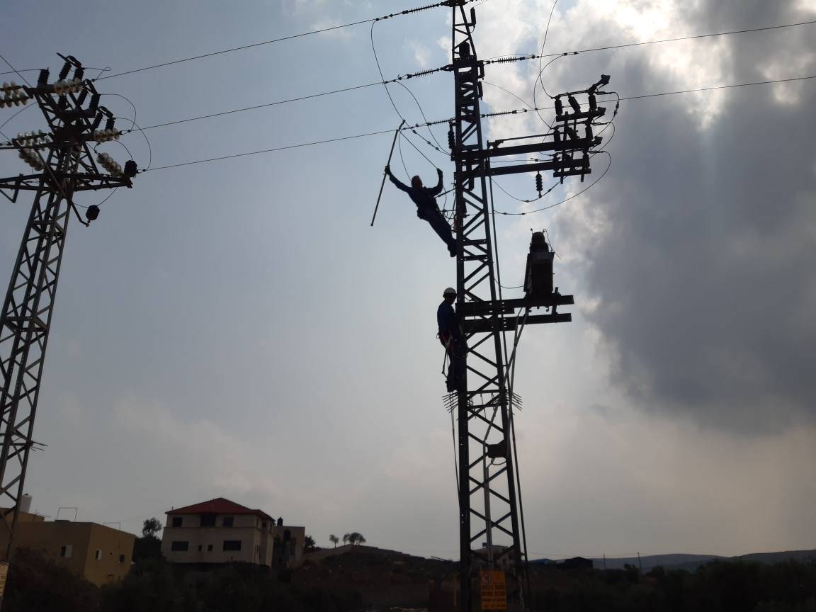 إصلاح الخلل في منطقة القعدة اثر حرق فيوزات خط الضغط العالي من قبل قسم صيانة الكهرباء في بلدية قصرة