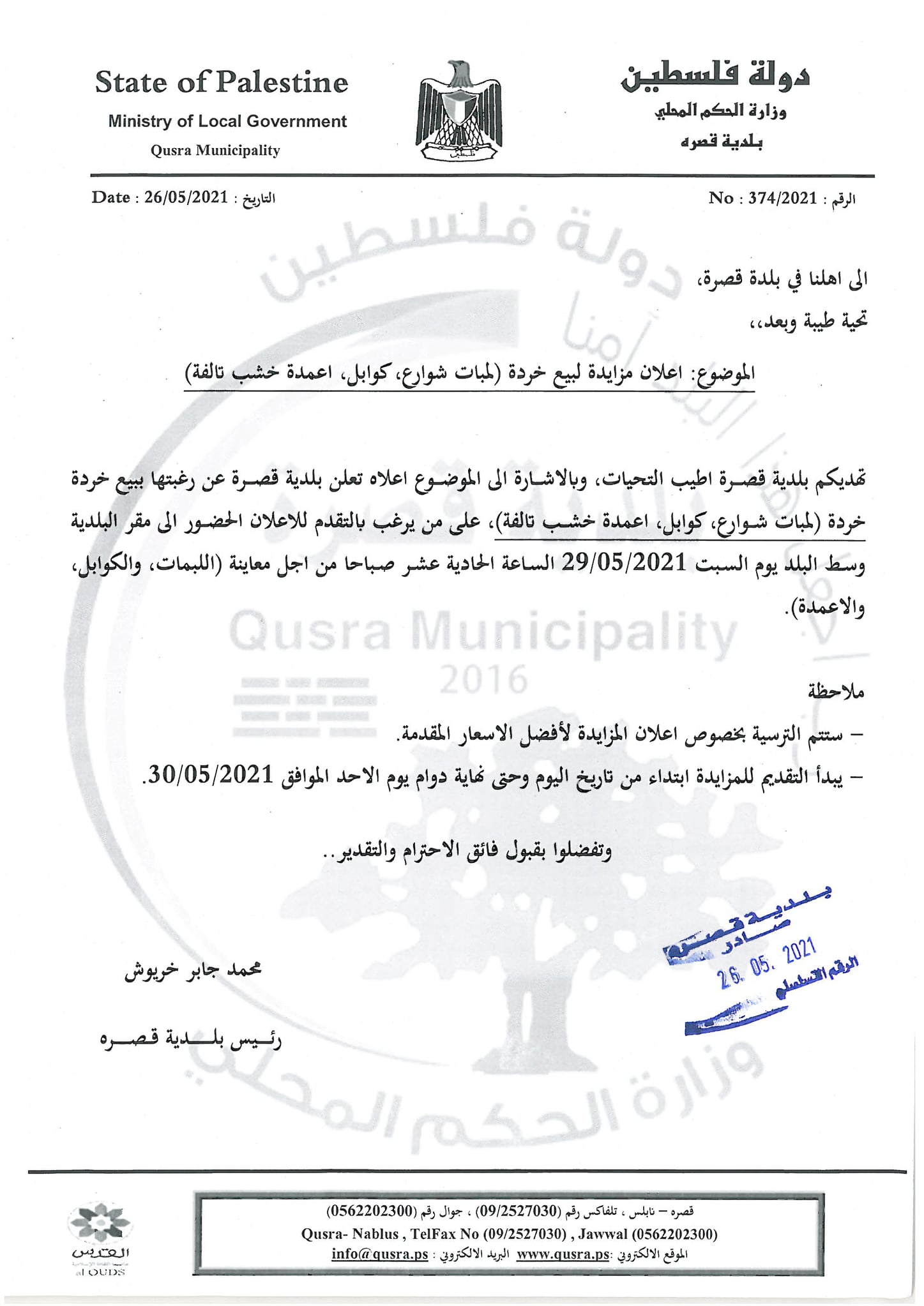 تتقدم بلدية قصره .. ممثلة برئيسها السيد محمد جابر خريوش وأعضاء مجلسها البلدي وعموم موظفيها…