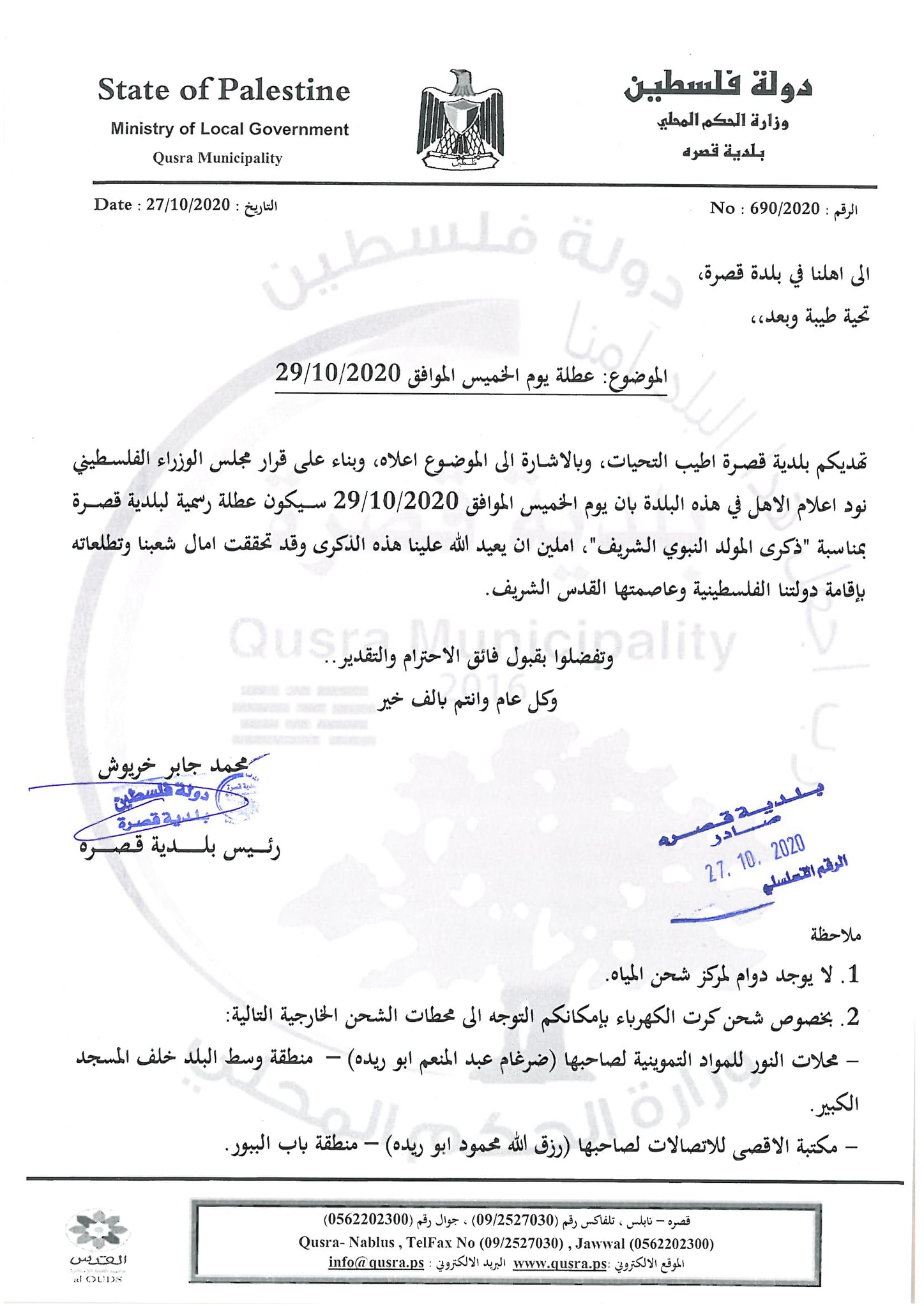 دوام موظفي بلدية قصرة خلال فترة التوقيت الشتوي